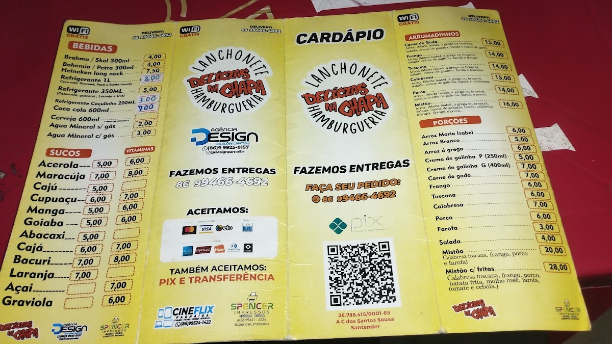 Lanchonete e hamburgueria Delícias na Chapa Menu